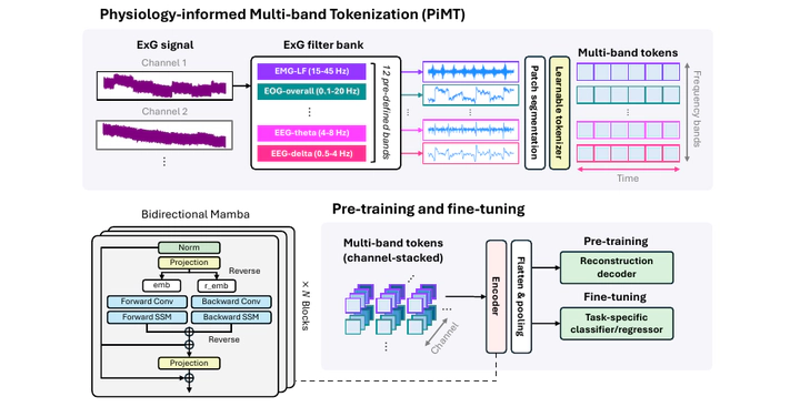 - Proposed Physiology-informed Multi-band Tokenization (PiMT) to represent ExG signals with physiology-aware token decomposition.
